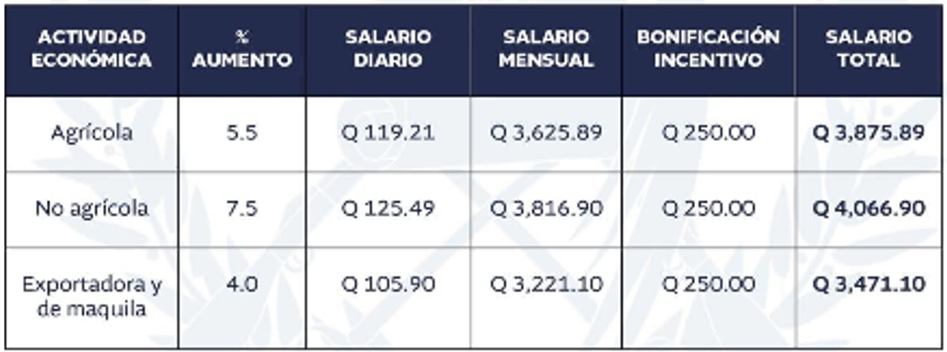 Cabe mencionar que el salario mínimo CE1 aplica para los municipios: Guatemala, Santa Catarina Pinula, San José Pinula, San José El Golfo, Palencia, Chinautla, San Pedro Ayampuc, Mixco, San Pedro Sacatepéquez, San Juan Sacatepéquez, San Raymundo, Chuarrancho, Fraijanes, Amatitlán, Villa Nueva, Villa Canales, Petapa.